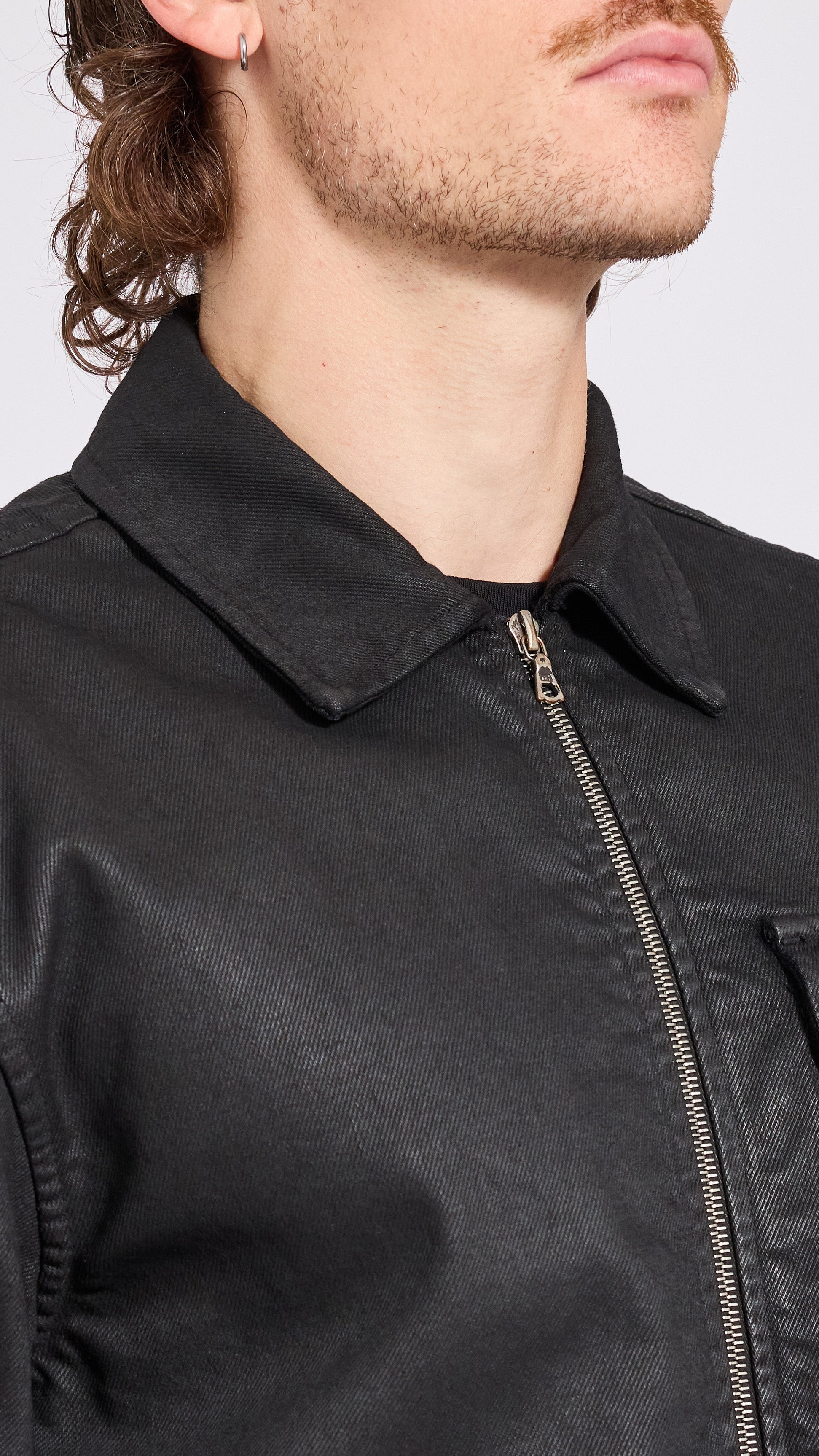 DRIES VAN NOTEN BLACK COATED DENIM CROOMSON SHIRT