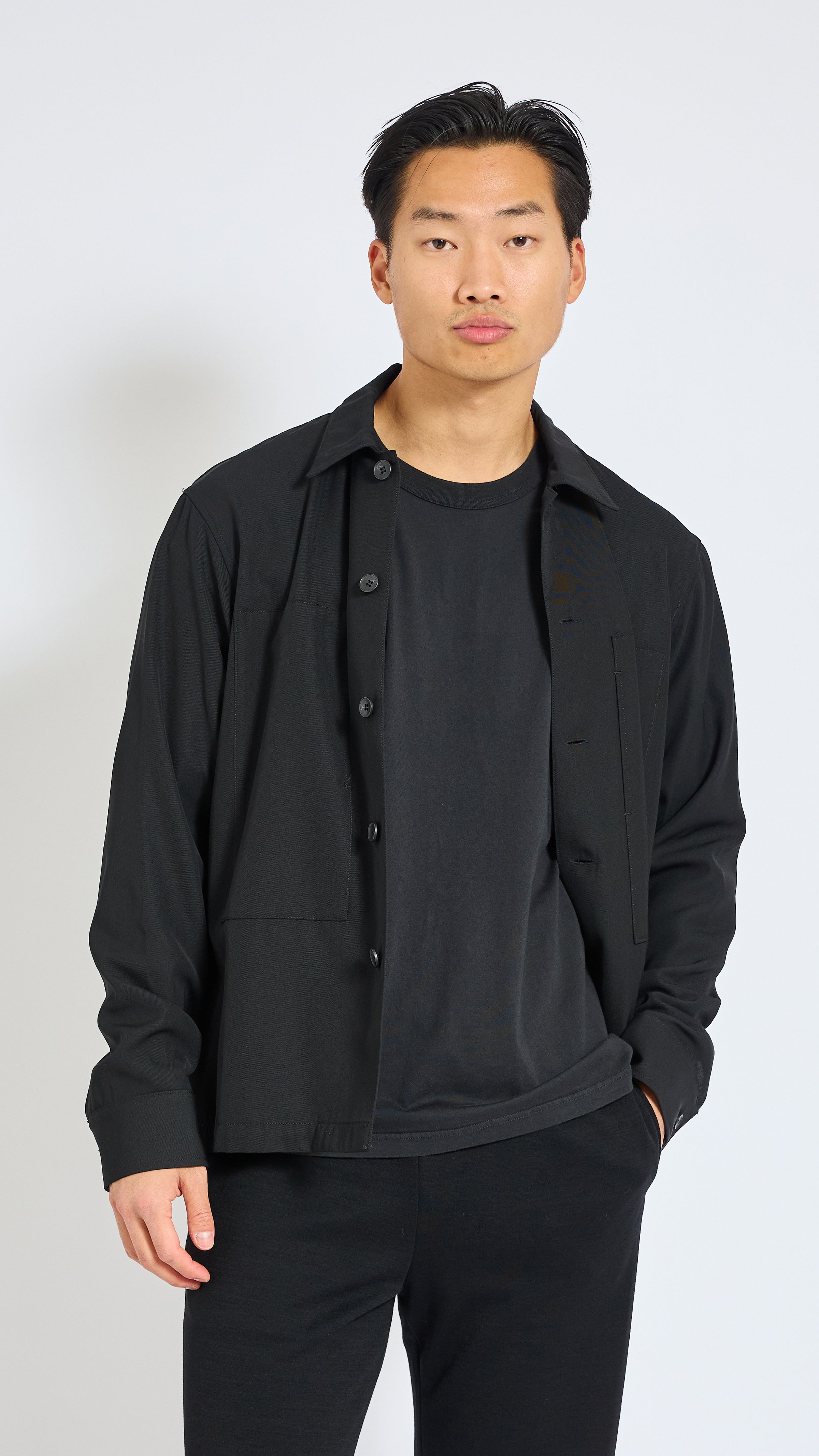 UNDECORATED BLACK WOOL OUTERSHIRT